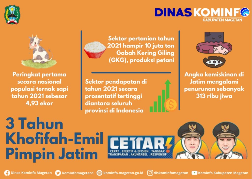 3 tahun sudah Gubenur dan Wakil Gubenur Periode 2019 – 2024 memimpin Provinsi Jawa Timur. Selama kepemimpinannya, Khofifah dan Emil telah mampu menumbuhkan dan membangkitkan berbagai sektor di Jatim. Terlebih di masa pandemi yang dirasa lebih berat.