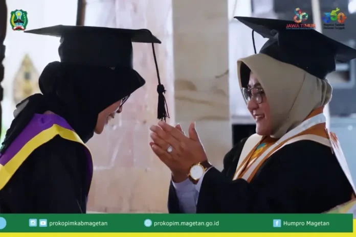 Sebanyak 451 wisudawan dari Sekolah Lansia Tangguh (Selantang) yang berasal dari dua kecamatan, yaitu Kec. Magetan dan Kec. Ngariboyo, telah resmi diwisuda oleh Bupati Magetan, Bunda Nanik, yang juga didampingi oleh Ketua TP.PKK Kabupaten Magetan. Acara yang berlangsung meriah ini bertempat di Pendapa Surya Graha pada Rabu (29/10/2025).