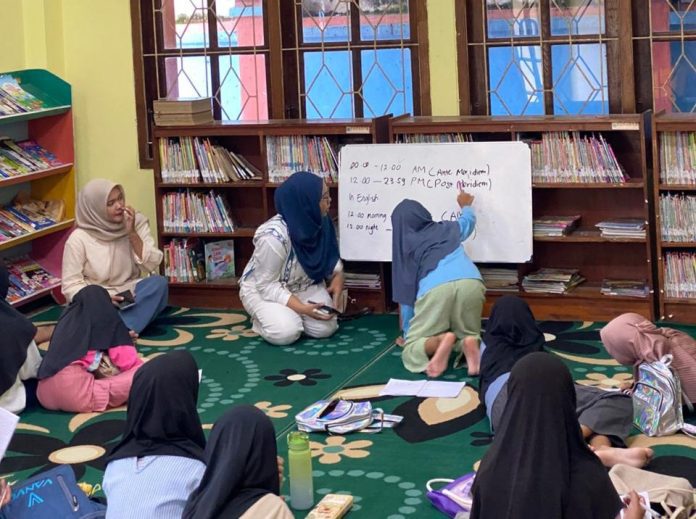 Pelaksanaan kegiatan after school Kelas Bahasa Inggris pada Sabtu 14 Februari 2026 diikuti oleh tak kurang dari 40 peserta. Mereka yang merupakan anak-anak usia Sekolah Dasar, dalam kelas Bahasa Inggris ini dibagi menjadi 3 jenjang atau kelompok. Pertama, usia PAUD sampai dengan kelas 1 SD. Berikutnya kelompok kedua, peserta anak-anak usia kelas 2 dan 3 SD. Lalu yang ketiga kelompok usia kelas 4 sampai 6 SD. Adapun materi yang diajarkan pada pertemuan kali ini yaitu, untuk kelompok pertama (PAUD sampai kelas 1 SD), anak-anak diajak belajar sambil bermain untuk mengenal ruang-ruang yang ada di sekolah dengan cara menghubungkan gambar yang ada dengan kalimat yang sesuai. Kemudian untuk kelompok kedua diberikan tugas menjawab pertanyaan mengenai nilai moral dari sebuah cerpen. Sedangkan untuk kelompok ketiga, mereka belajar mengenai waktu dan jam. Para pengajar kelas ini, yang tergabung dalami relawan (volunteer) kelas Bahasa Inggris Dinas Arpus Kab. Magetan, cukup kreatif dalam membimbing anak-anak yang mengikuti kelas ini, sehingga suasana belajar yang menyenangkan dapat tercipta. (nas)