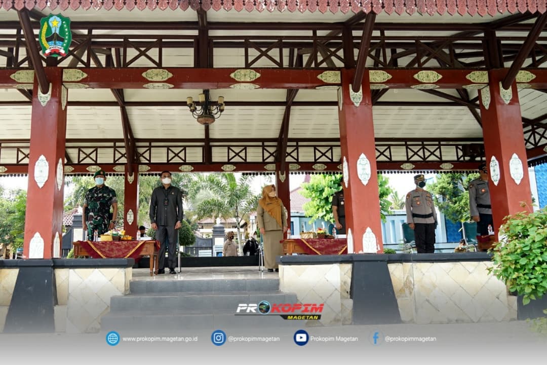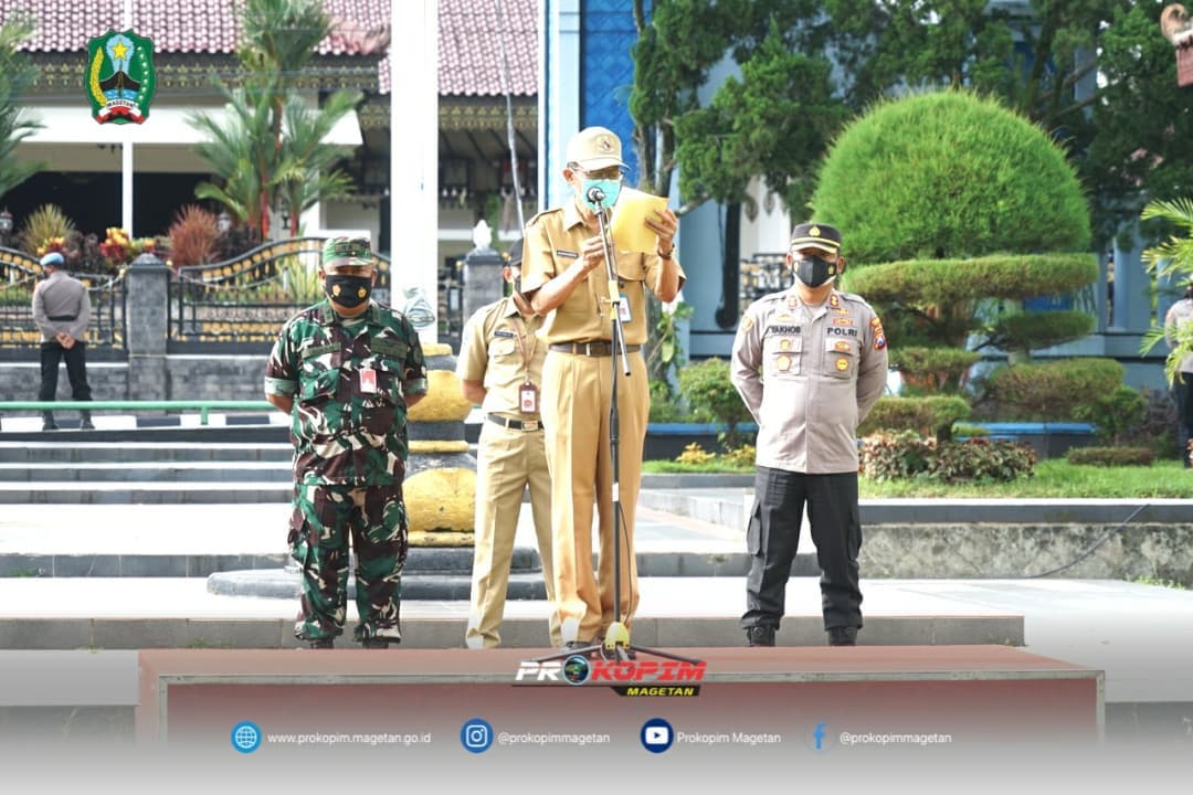 Giat apel hari ini, Senin (24/01/2022) dihadiri oleh Bupati & Wakil Bupati Magetan, Satgas COVID-19 Magetan dan OPD terkait.