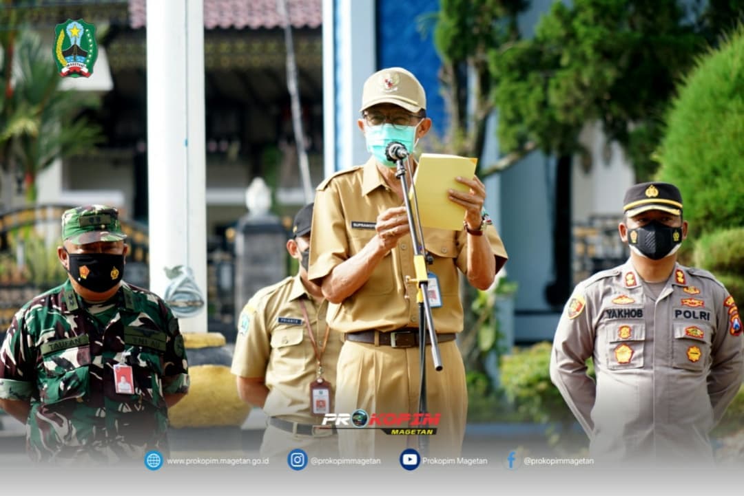 Gubernur Jawa Timur melalui Bupati Magetan pada apel kali ini menyampaikan bahwa demi menekan laju penyebaran kasus COVID-19 yang diperkirakan akan mengalami peningkatan signifikan pada Februari-Maret tahun ini, di Indonesia sendiri meskipun penyebaran COVID-19 saat ini masih relatif bisa dikendalikan namun tanda-tanda kenaikan angka COVID-19 sudah mulai nampak.