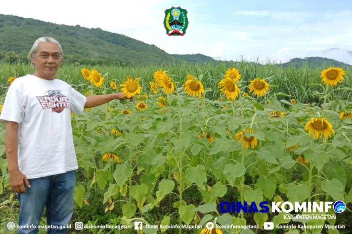 Ia bermitra dengan PT Tri Jawara Tunas Agroindo dalam bududaya sun flower tersebut, rekanan produk kuwaci terkenal. Per kilo bijinya dihargai Rp16 ribu.