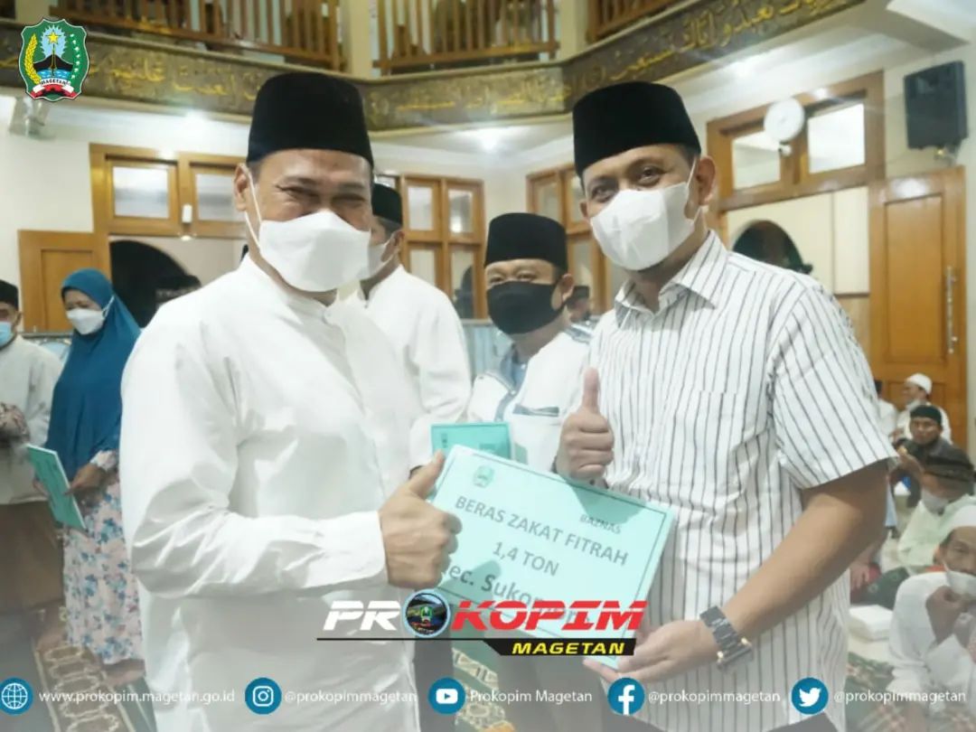 Dalam kesempatan tersebut juga diserahkan bantuan berupa zakat fitrah Baznas Kabupaten Magetan sejumlah total 7900 kg dan alat sholat secara simbolis oleh Bupati Suprawoto kepada takmir masjid, Camat Maospati, Camat Karangrejo, Camat Karas, Camat Barat, Kartoharjo, dan Camat Sukomoro . Turut hadir dalam safari ramadhan Wakil Bupati Magetan beserta Forkopimda Magetan.