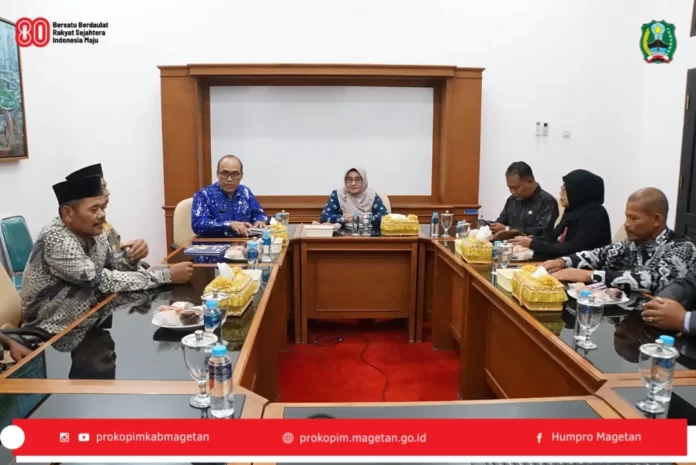 Bupati Magetan Nanik Sumantri menerima audiensi Kepala Desa se-Kecamatan Ngariboyo di Ruang Rapat Pendapa Surya Graha, Jumat (08/08/2025).