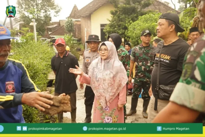 Kepedulian terhadap warga yang tertimpa musibah ditunjukkan langsung oleh Bupati Magetan Nanik Sumantri. Pada Minggu (08/03/2026), Bupati meninjau lokasi tanah longsor di Dusun Bulusari, Desa Jabung, Kecamatan Panekan, sekaligus menyerahkan bantuan kepada warga terdampak.