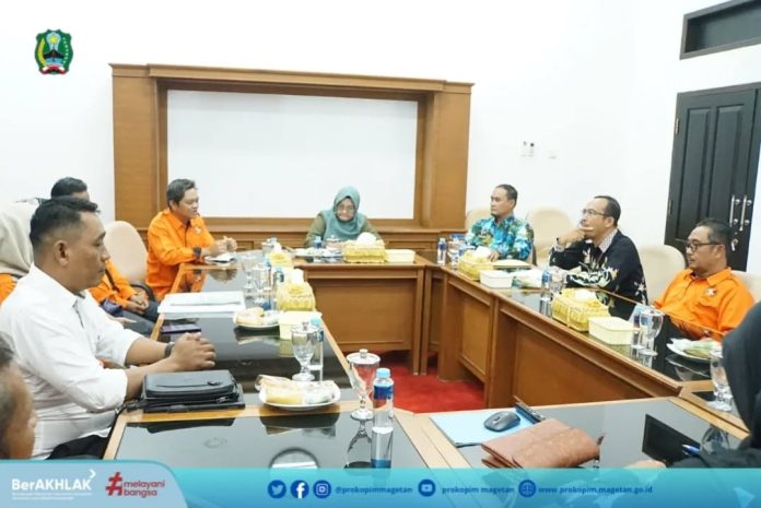 Melanjutkan agenda kerja pagi ini, Bupati Magetan Nanik Endang Rusminiarti menerima audiensi dari jajaran Asosiasi Perusahaan Media Magetan (APMM), Kamis (19/06/2025), bertempat di Ruang Rapat Pendapa Surya Graha.