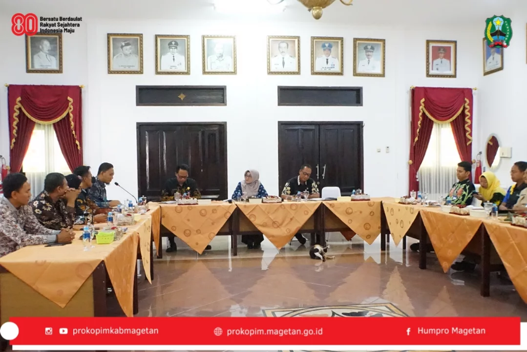 Bupati Magetan Nanik Sumantri, menerima audiensi Himpunan Pengembang Perumahan dan Permukiman Rakyat (HIMPROMA) guna membahas percepatan pembangunan perumahan di Kabupaten Magetan, bertempat di Ruang Jamuan Pendapa Surya Graha, Jumat (08/08/2025).