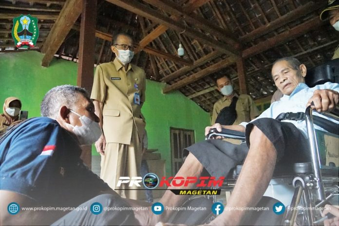 Sebagai bentuk kepedulian Pemerintah Daerah Kabupaten Magetan dalam memberikan pelayanan serta perhatian terhadap masyarakat yang memiliki kebutuhan khusus terlebih untuk mereka penyandang tuna daksa, hari ini, Senin (23/05) Bupati Magetan bersama Kadinsos Magetan serta jajaran membagikan kursi roda kepada masyarakat di Desa Baleasri, Kecamatan Ngariboyo dan Desa Nglopang, Kecamatan Parang.