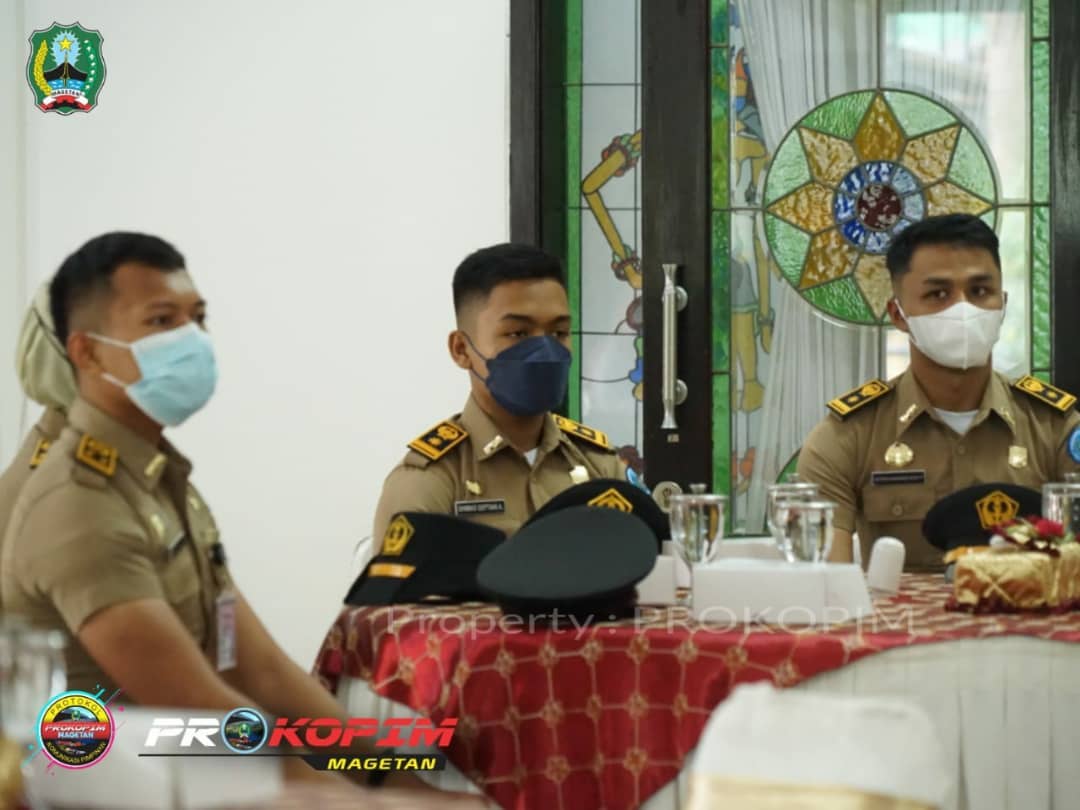 Praja Institut Pemerintahan Dalam Negeri (IPDN) asal Magetan bersilaturahmi dengan Bupati Magetan Suprawoto, didampingi oleh Kepala BKD Magetan dan Kabag Prokopim Magetan, bertempat di Ruang jamuan Pendapa Surya Graha, Rabu (05/01/2022).