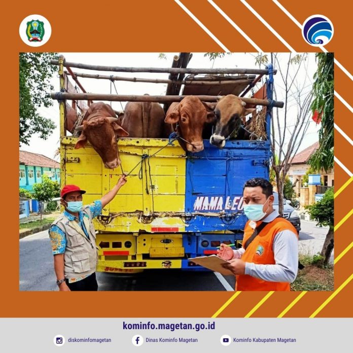 Dalam rangka pengawasan peredaran Hewan dan Bahan Asal Hewan di daerah perbatasan antar provinsi, Dinas Peternakan dan Perikanan Kabupaten Magetan lakukan pemeriksaan pada peredaran lalu lintas bibit/ternak, pengawasan mutu bibit/benih, kelayakan sarana angkut serta kelengkapan dokumen berupa Surat Keterangan Kesehatan Hewan (SKKH). Adanya pemeriksaan Surat Keterangan Kesehatan Produk Hewan (SKKPH) di lokasi Check Point lalu lintas ternak yaitu di Kabupaten Magetan terdapat 2 (dua) buah Check Point yaitu di Check point Desa Gilang Poncol dan Check point Cemoro Sewu. Kamis (18/3/ 2021).
