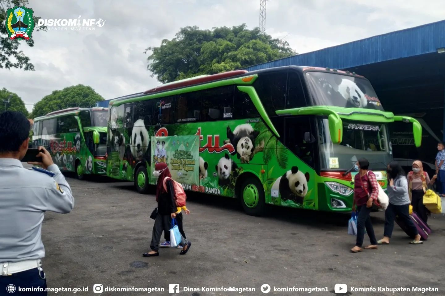 Diantar 10 Bus, Pemudik Program Mudik Bareng Pemprov Jatim Tiba di Magetan