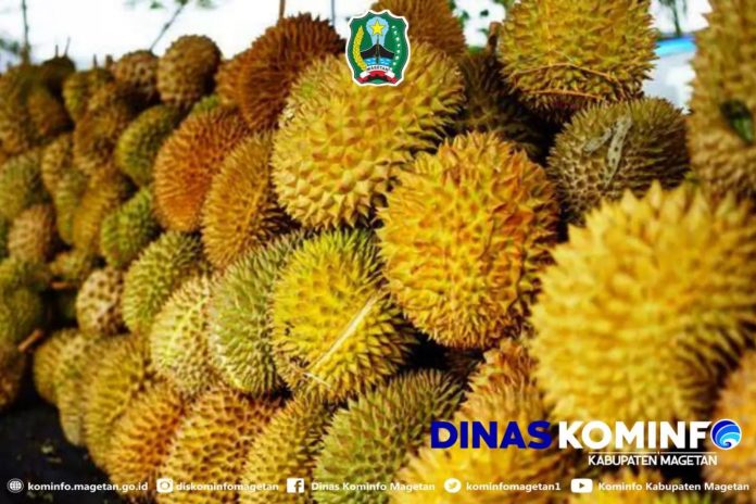 DISKOMINFO, Magetan – Durian Suro tampil sebagai juara pertama dalam Festival Duren Nak’Nan Kec. Panekan, Magetan. Durian ini milik mbah Suro, warga Desa Ngliliran. Umur pohonnya kurang lebih 15 tahun.