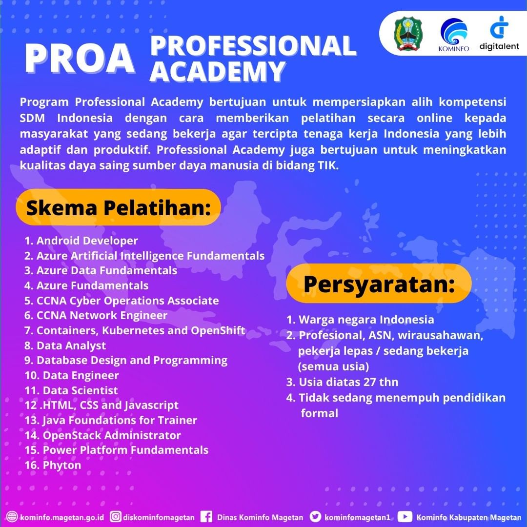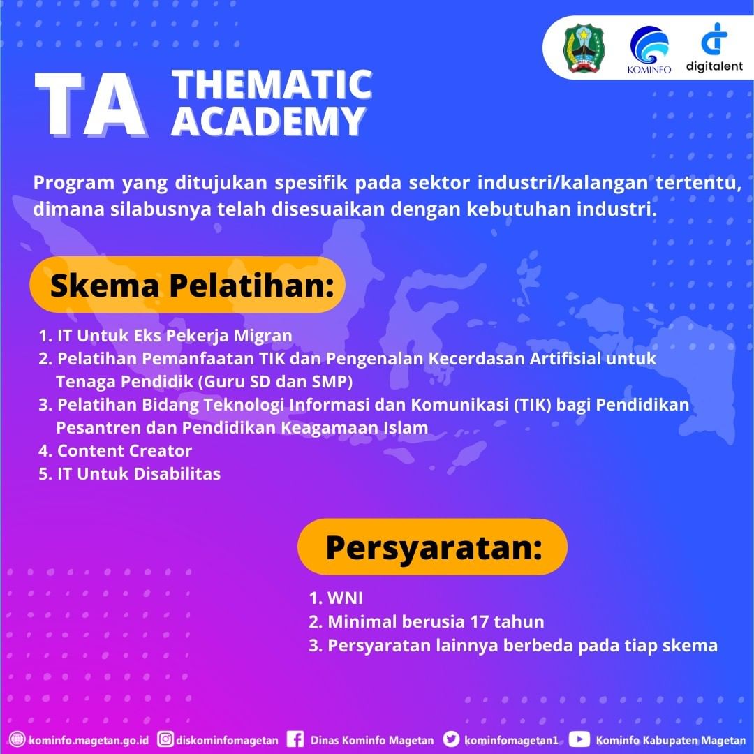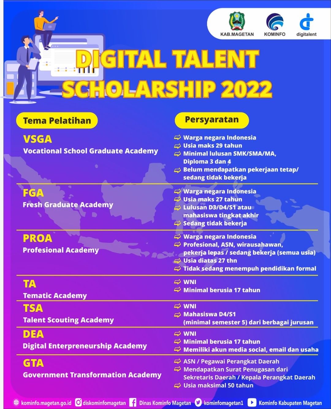 Di tahun 2022 ini, masyarakat Kabupaten Magetan mendapatkan kesempatan yang besar sebagai salah satu peserta pelatihan yang dibagi dalam 6 akademi dan puluhan skema pelatihan.