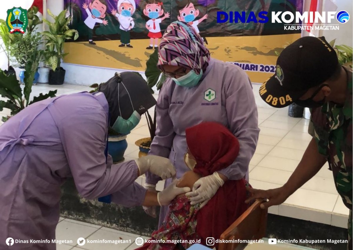 Puskesmas Lembeyan melakukan inovasi jemput bola dengan melaksanakan vaksinasi COVID-19 kepada siswa Sekolah Dasar (SD)/sederajat di Kecamatan Lembeyan. Pada Kamis (6/1) dilakukan vaksinasi di SD Lembeyan Kulon I, SD Lembeyan Kulon II dan MI Lembeyan Kulon.