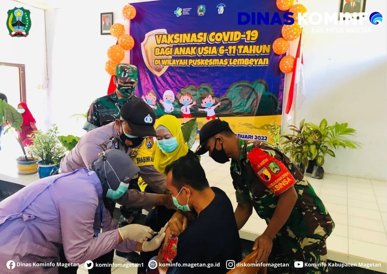 Puskesmas Lembeyan melakukan inovasi jemput bola dengan melaksanakan vaksinasi COVID-19 kepada siswa Sekolah Dasar (SD)/sederajat di Kecamatan Lembeyan. Pada Kamis (6/1) dilakukan vaksinasi di SD Lembeyan Kulon I, SD Lembeyan Kulon II dan MI Lembeyan Kulon.