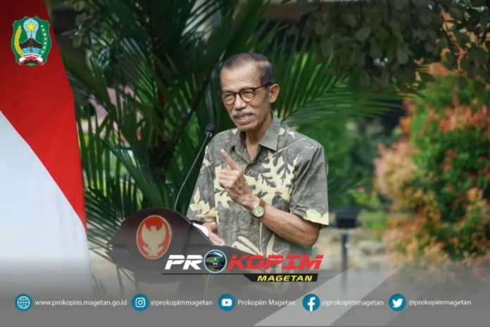 Jelang Hari Raya Idul Fitri 1443 H (Lebaran) Bupati Magetan, Suprawoto, menggelar Jumpa Pers dengan sejumlah awak media, di taman Kompleks Pendapa Surya Graha, Kamis petang, (28/04/2022).