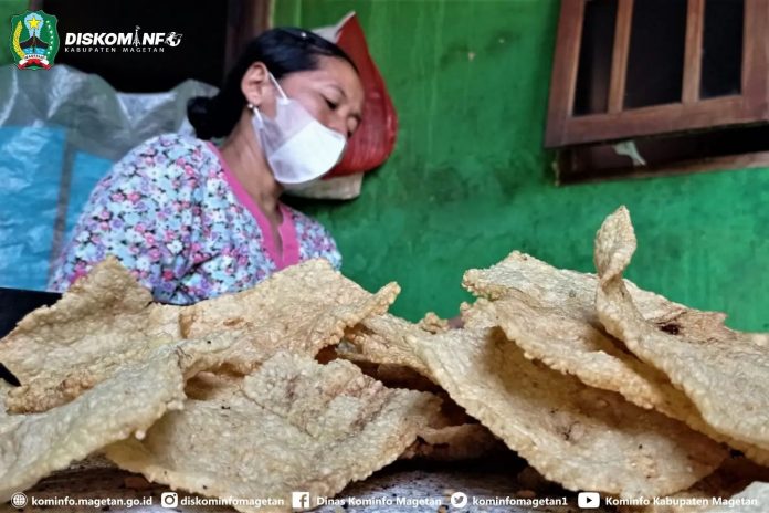 “Semua manual, dari nyampur adonan, memasak pakai kayu, ngiris, dan menggoreng lempeng, semua pakai tangan, nggak pakai mesin karena nggak punya modal mau beli mesin,” ujarnya ditemui di rumahya Selasa (13/04/2022).