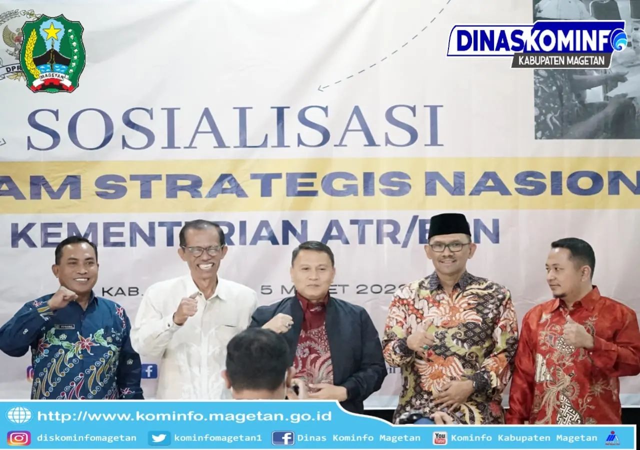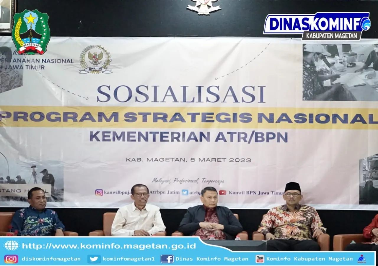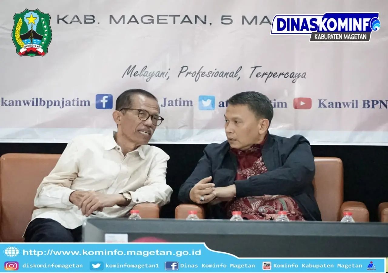Hadir selaku narasumber dalam acara sosialisasi ini Mardani Ali Sera personil Komisi II DPR RI, Ribut Hari Cahyono Kakanwil BPN Prop Jatim dan Suwono Budi Hartono Kepala Kantor Pertanahan Magetan.