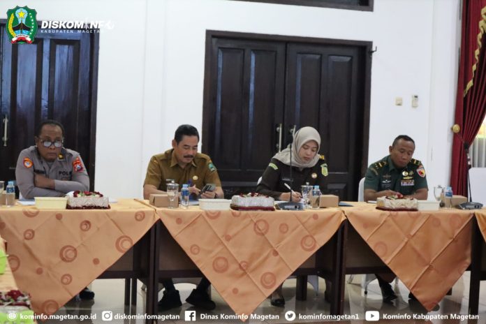 Pemerintah Kabupaten Magetan mengikuti kegiatan ini secara virtual di Ruang Jamuan Pendopo Surya Graha yang dihadiri oleh Asisten Perekonomian dan Pembangunan, perwakilan forkopimda dan OPD terkait.(Diskomimfo:may / fa2 / IKP1)
