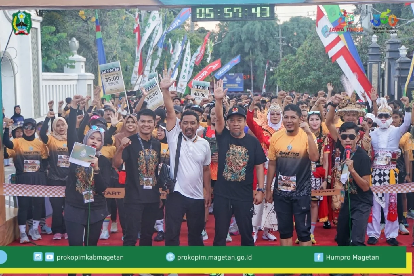 Di lokasi finis, suasana semakin meriah dan semarak. Ratusan pelari yang berhasil menyelesaikan tantangan jarak 5K disambut dengan orkes musik dan berbagai hiburan rakyat lainnya, menciptakan suasana pesta kebersamaan dan kegembiraan yang melengkapi perayaan Hari Jadi Kabupaten Magetan.