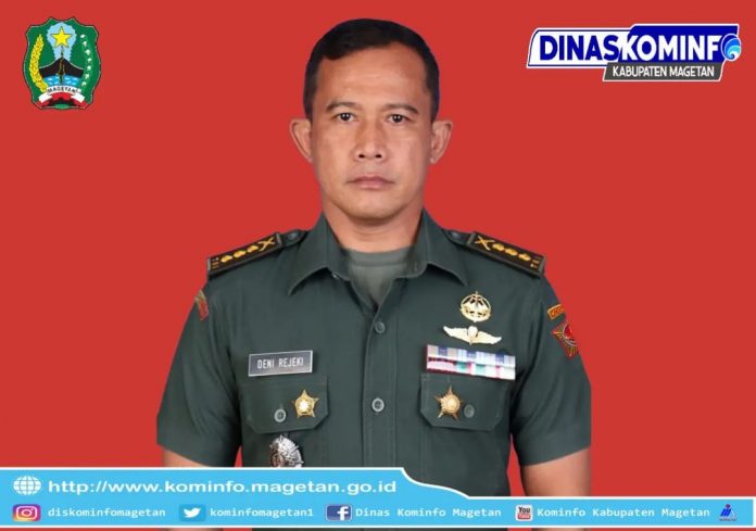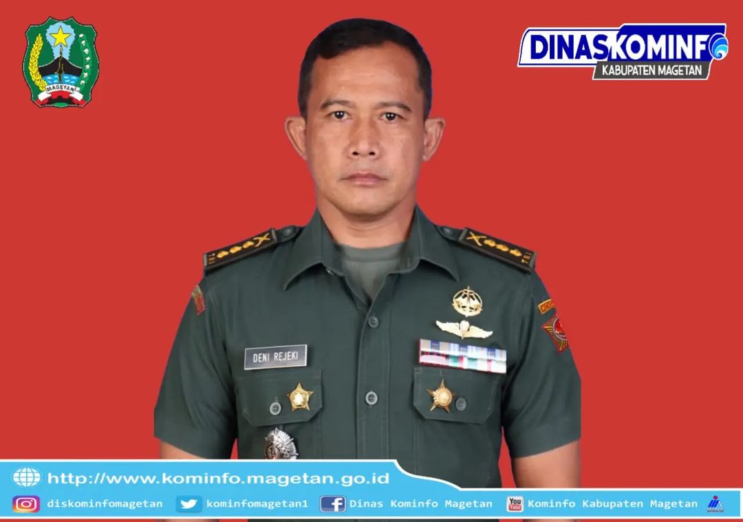 Sebelum menjabat sebagai Komandan Korem 081/DSJ Madiun DAM V/Brawijaya, Kolonel Inf. Deni Rejeki juga pernah menjabat sebagai Danton Yonif DAM 8/TKR (1996), Danton BAR Kipan C Yonif 752/VYS (1997), Dankipan Yonif 752/VYS (2000), Dankipan C Yonif 752/VYS (2002), Dankima Yonif 752/VYS (2003), Pasi 1 Yonif 752/VYS (2003), Pama Pusintelad Lulusan Slapa (2004), PS Katim Riksa Balaklitpers Pusintelad (2005), Wadan Yonif 752/WRG DAM VII/Pampers Spamad (2008), Pabandya Pam Sinteldam IX/UDY (2010), Kabag Bindik Sdirbindiklat (2011), Dandeninteldam VI/MLW (2012), Dandim 0912/Kubar REM 091/ASN (2013), Waka Bintaldam VI/MLW (2014), Waaspers Kasdam VI/MLW (2016), Kabintaldam VI/MLW (2017), Kainfolahtadam VI/MLW (2018), Aspers Kasdam Jaya (2020), Pamen Denma Mabesad (2021), dan Waaspers Kogabwilhan II (2021).(Diskominfo:to2/fa2/IKP1)