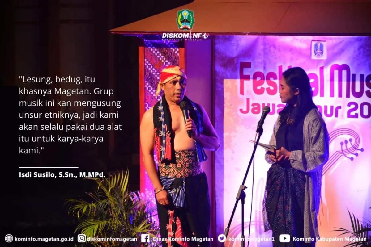 Lesung dan bedug merupakan dua alat musik yang menjadi ciri khas Nareswara Etnik pada saat tampil di Festival Musik Jawa Timur 2022. Grup musik binaan Dinas Pariwisata dan Kebudayaan Kabupaten Magetan tersebut, berhasil menyabet 2 penghargaan sekaligus. Adapun dua penghargaan tersebut adalah lima penyaji terbaik dan lima penulis naskah terbaik.