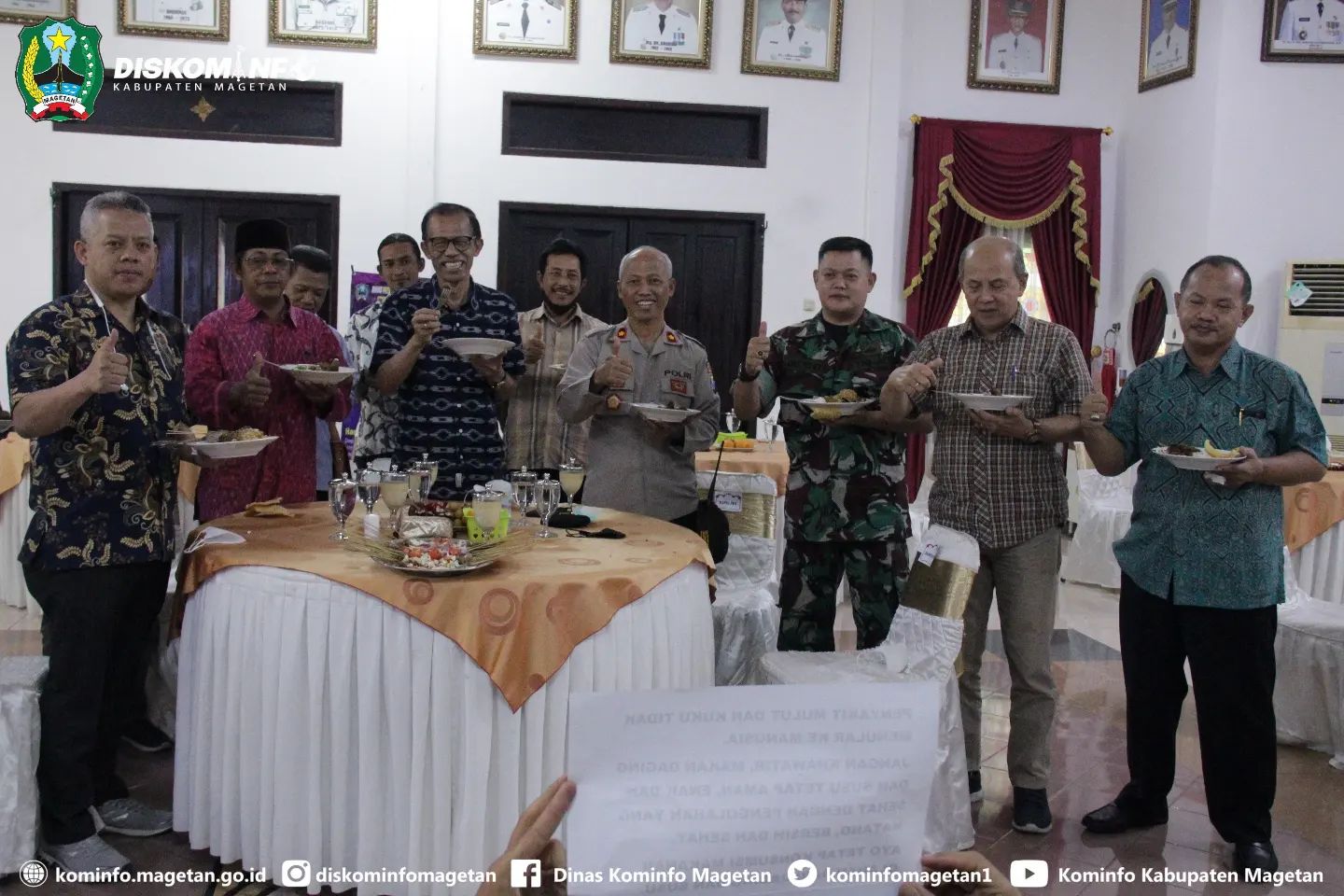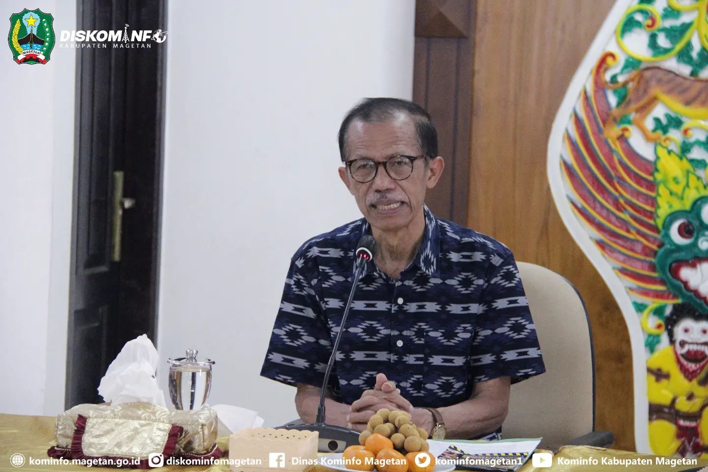 Penyebaran Penyakit Mulut dan Kuku ( PMK ) yang menjangkiti hewan ternak di Jawa Timur, telah sampai di Magetan, menyikapi hal tersebut Pemerintah Kabupaten Magetan segera bergerak cepat, salah satunya dengan menggelar Rapat Koordinasi PMK Bersama Anggota Forkopimda, OPD terkait dan para peternak. Dalam Rakor yang digelar di Ruang Rapat Pendopo Surya Graha ini dibahas tindakan pencegahan dan pengobatan terhadap wabah ini. ( Senin,16/5/22)