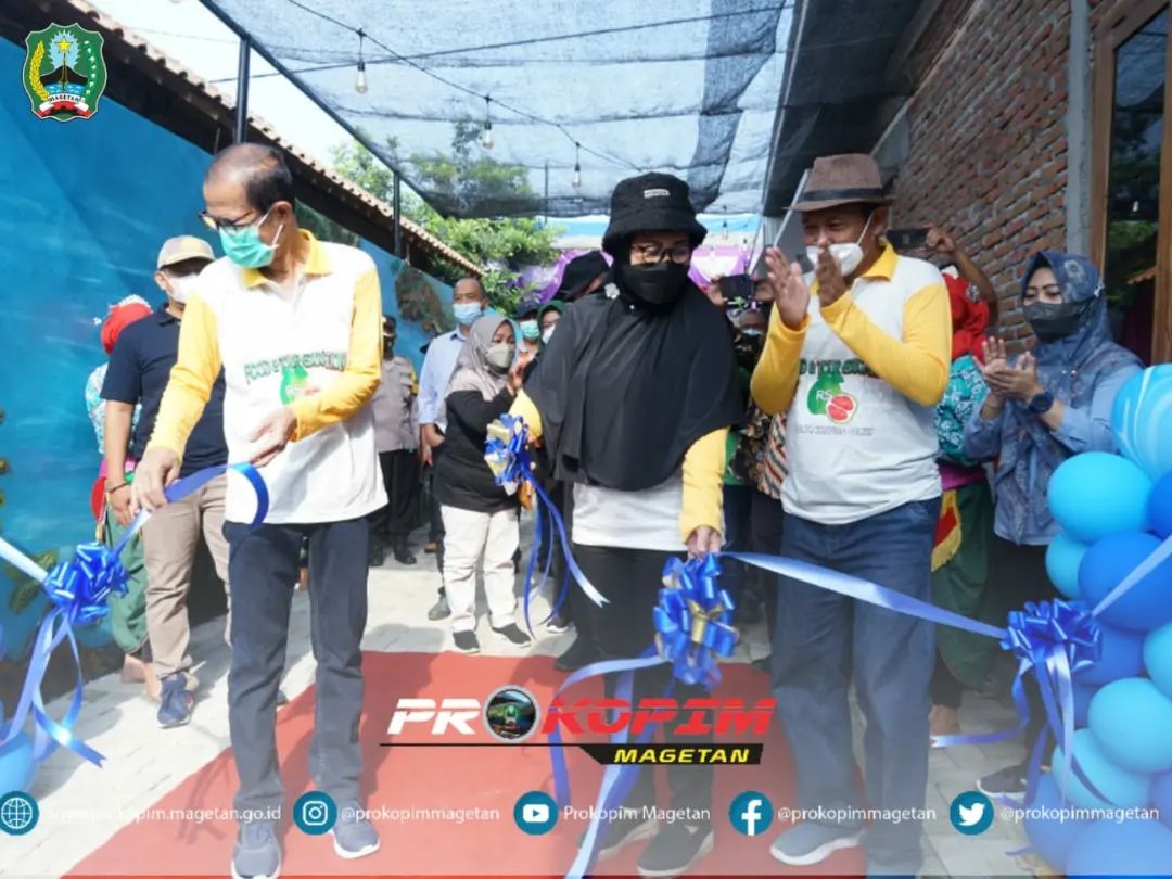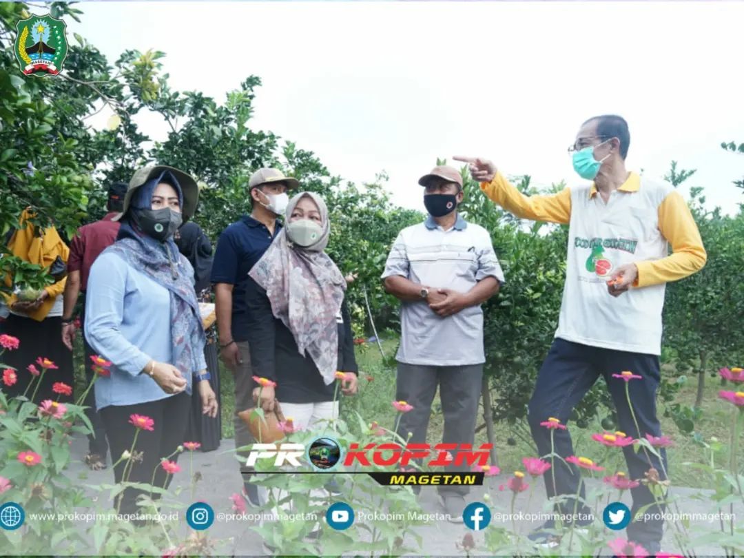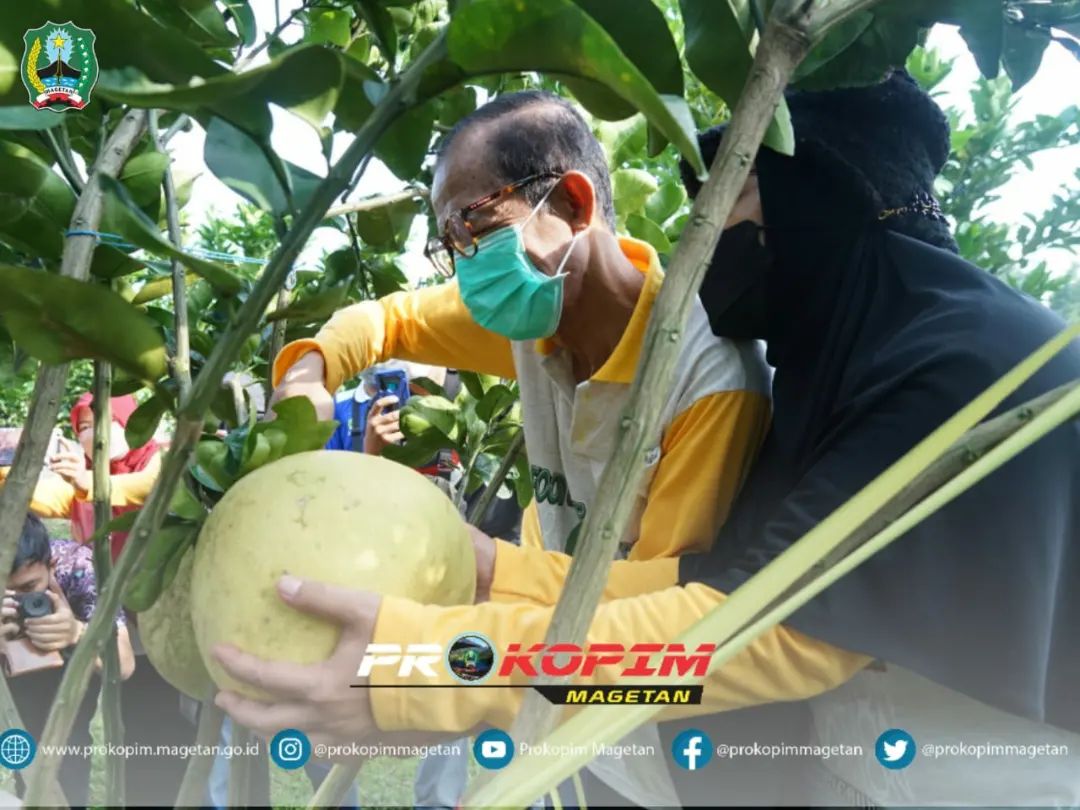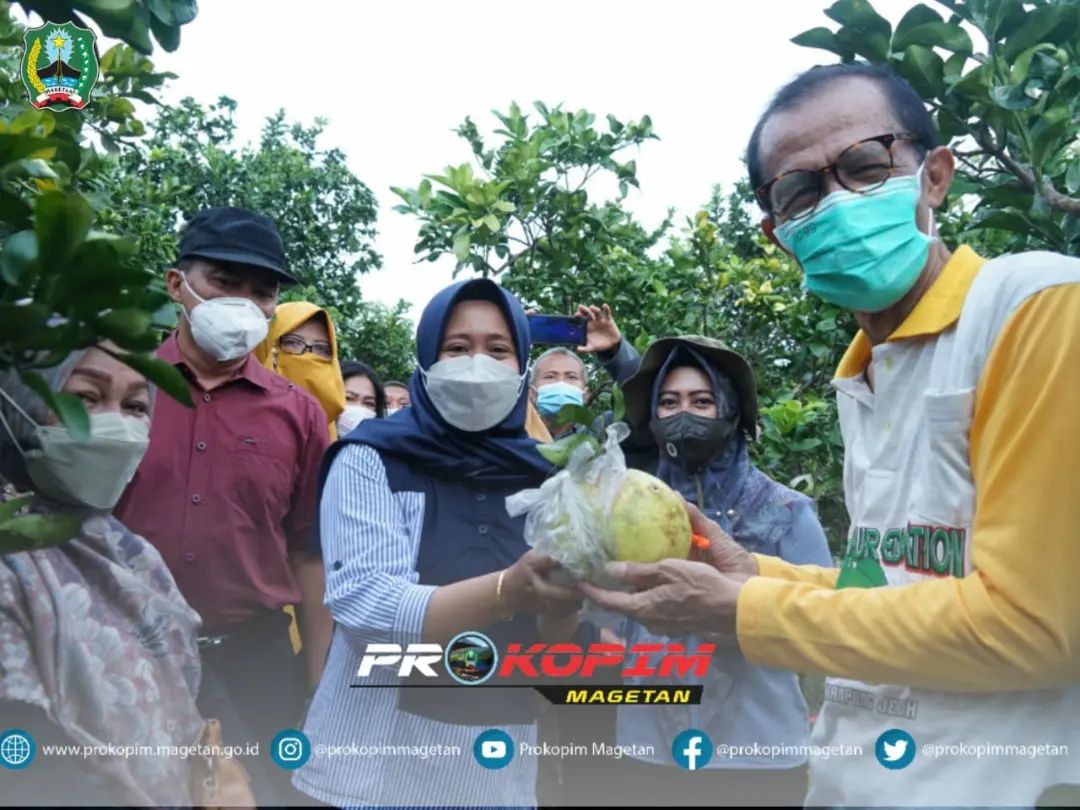 Sabtu pagi Bupati Magetan bersama ibu Titik Suprawoto dan Kepala Perangkat Daerah terkait menghadiri Soft Launching Wisata Kebun Jeruk Griya Inggil Roso Siro di Desa Tamanan Kecamatan Sukomoro yang ditandai dengan pemotongan pita dan pemetikan secara langsung buah jeruk. (26/03/2022)