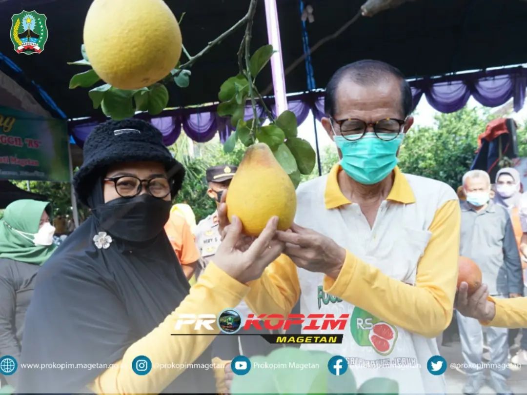 Dalam sambutannya Bupati Magetan menyampaikan rasa terimakasih dan bangga kepada Bapak Suroso karena telah merintis ini. “Inilah contoh sebaik- baik manusia yang selalu memberikan manfaat kepada orang lain,” ungkapnya. Jeruk pamelo jika ditekuni akan menjadi luar biasa dibanding tanaman lain dan lebih menguntungkan. Karena satu pohon kalau dirawat dengan baik akan menghasilkan banyak buah. Kami berharap di era digital ini orang akan kembali ke alam maka kalau di Batu ada petik apel di sini ada petik jeruk dimana harus ada standar harganya agar tidak mengecewakan pengunjung.