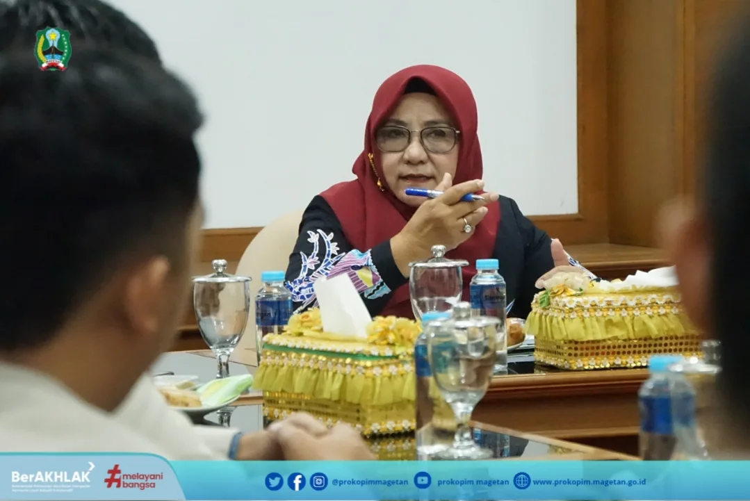 Melanjutkan giat pagi ini, Bupati Magetan Nanik Endang Rusminiarti menerima audiensi Pemuda Muhammadiyah Magetan, bertempat di Ruang Rapat Pendapa Surya Graha, Jumat (04/07/2025).