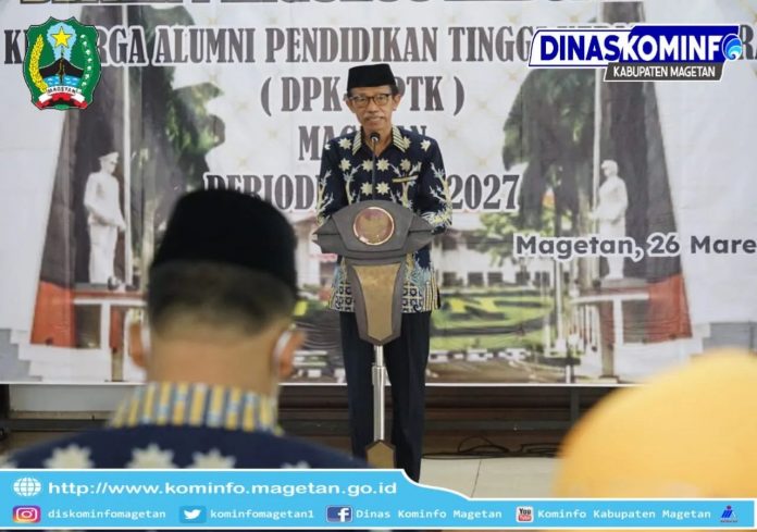 Bupati Magetan Suprawoto mengajak Ikatan Keluarga Alumni Pendidikan Tinggi Kepamongprajaan (IKAPTK) Magetan untuk meningkatkan kompetensi diri. Ajakan tersebut bertujuan, agar ikatan keluarga alumni tersebut dapat menjadi teladan ASN yang tangguh, profesional, loyal, berintegritas, dan berprestasi selama mengabdikan dirinya di Kabupaten Magetan.