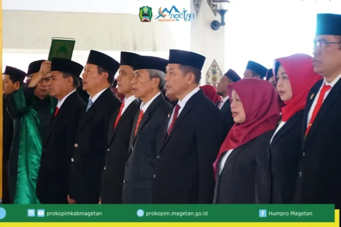 Bupati Magetan, Nanik Sumantri, melantik dan mengambil sumpah jabatan sejumlah pejabat di lingkungan Pemerintah Kabupaten Magetan, Selasa (10/03/2026) di Pendapa Surya Graha.