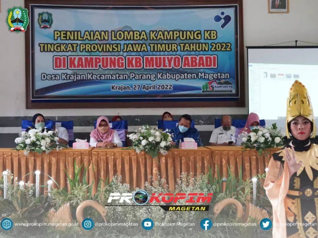 Kampung KB Mulyo Abadi yang berada di Desa Krajan, Kecamatan Parang, Kabupaten Magetan mendapatkan kunjungan dari Tim Penilai Lomba Kampung KB Tingkat Provinsi Jatim, pada Rabu Pagi (27/04). Kunjungan dilaksanakan bertempat di Balai Desa Krajan, adapun Ketua TP PKK Kab. Magetan hadir didampingi Wakil Bupati Magetan, bersama Forkopimda, Forkopimca dan OPD terkait.