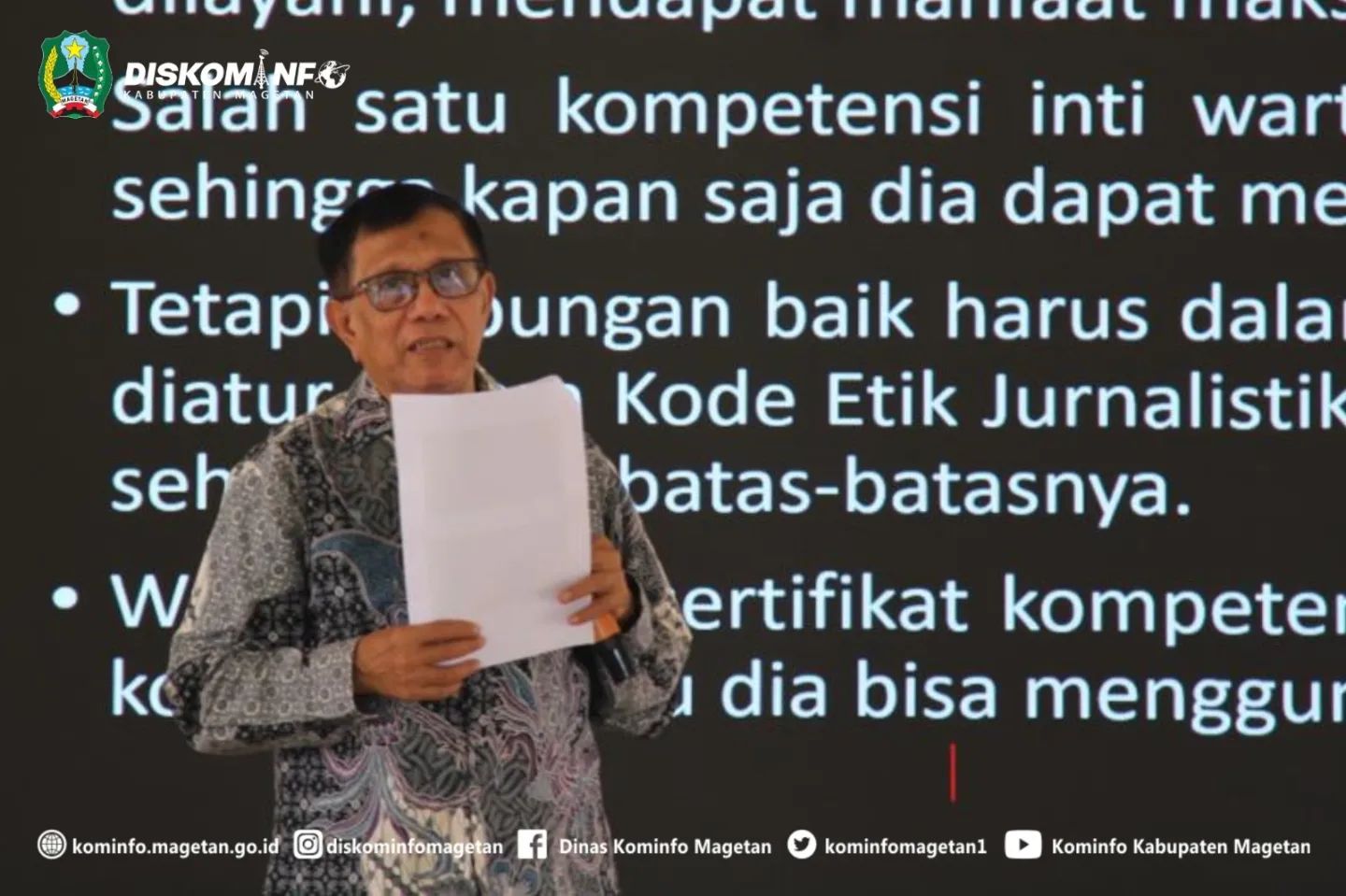 Dalam lembaga yang dihadiri oleh Bupati Magetan, Suprawoto menjelaskan perbedaan dunia nyata dengan dunia maya beserta konsekuensinya. “diantara dunia nyata dengan dunia maya lebih bengis di dunia maya. Hukum peradilan lebih lamban di dunia maya. Jadi kalian sebagai wartawan berbijaklah dalam menyampaikan berita,” pesan Bupati Suprawoto.