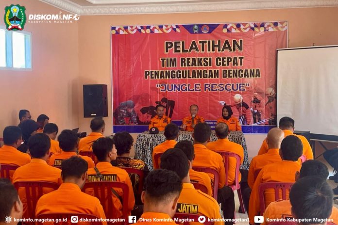 Sebanyak 40 personel Tim Reaksi Cepat Penanggulangan Bencana (TRC-PB) BPBD Magetan mengikuti pelatihan peningkatan kapasitas di Kampung Susu Singolangu, Kelurahan Sarangan, Kecamatan Plaosan. Kegiatan bertema “Jungle Rescue” ini digelar dua hari, 23–24 September 2025.