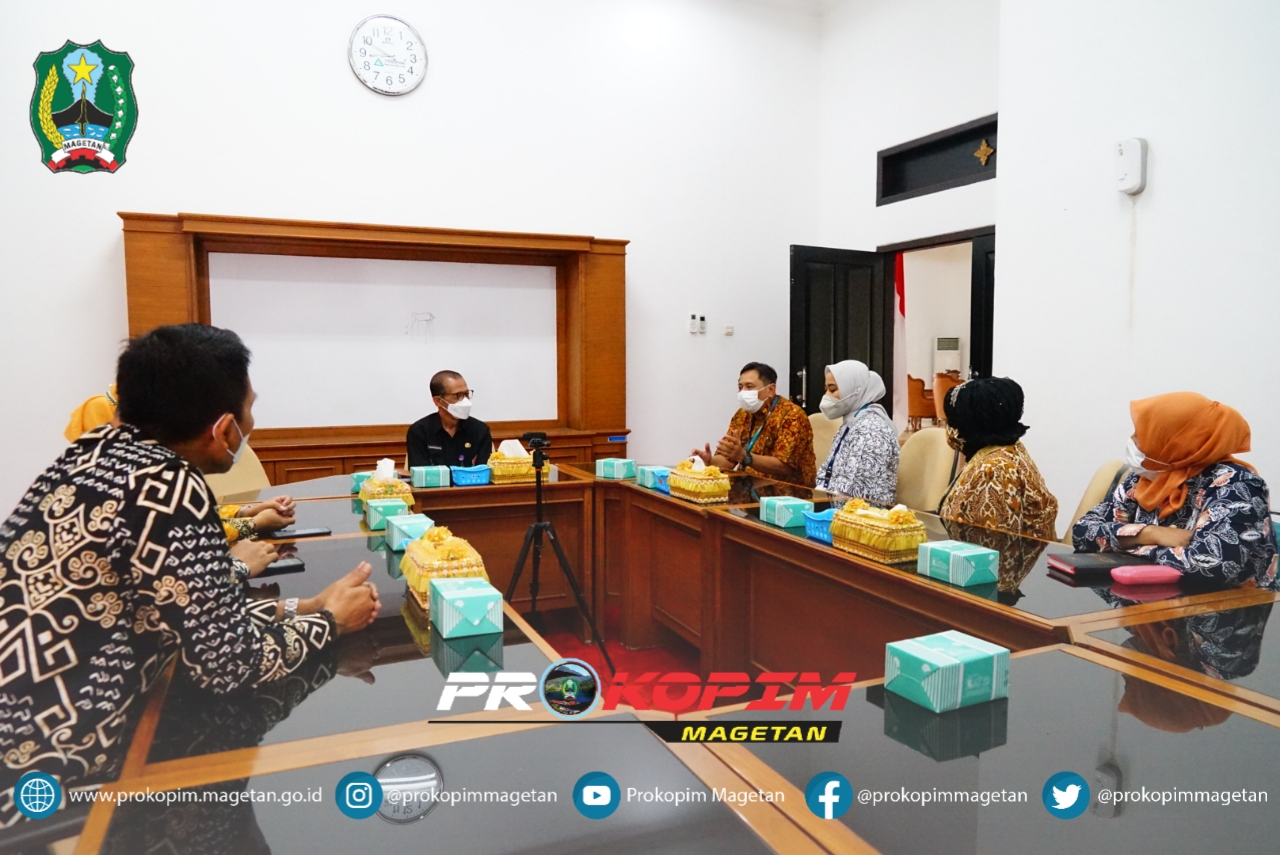Bupati Magetan Suprawoto beraudiensi bersama Pimpinan Cabang PT Pegadaian Magetan dan Madiun, bertempat di Ruang Rapat Pendapa Surya Graha, Kamis, (19/5/2022).
