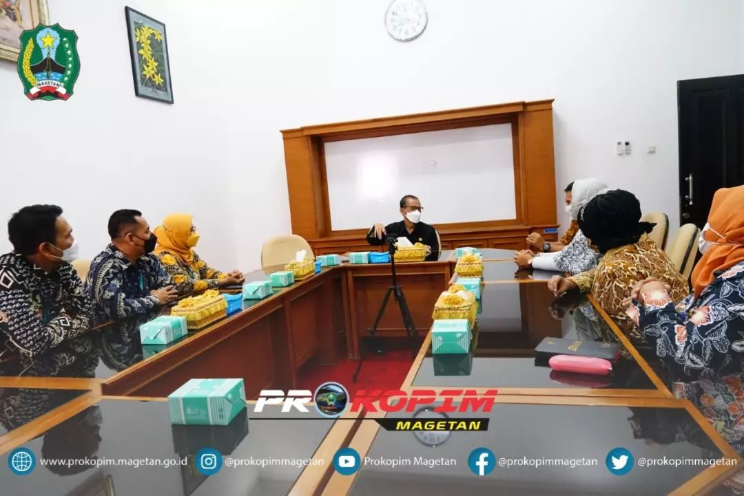 Bupati Magetan Suprawoto beraudiensi bersama Pimpinan Cabang PT Pegadaian Magetan dan Madiun, bertempat di Ruang Rapat Pendapa Surya Graha, Kamis, (19/5/2022).