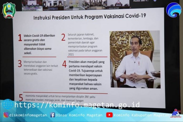 Dihadiri Bupati Magetan, Asisten, Kepala Dinas Kesehatan, Kepala BPBD Magetan, digelar di ruang jamuan Pendopo Surya Graha. Rakor ini dilaksanakan via zoom metting bersama Gubernur Jawa Timur, Pangdam Brawijaya, Kapolda Jawa Timur, Sekretaris Daerah Provinsi Jawa Timur, Jumat. (8/1/2021).