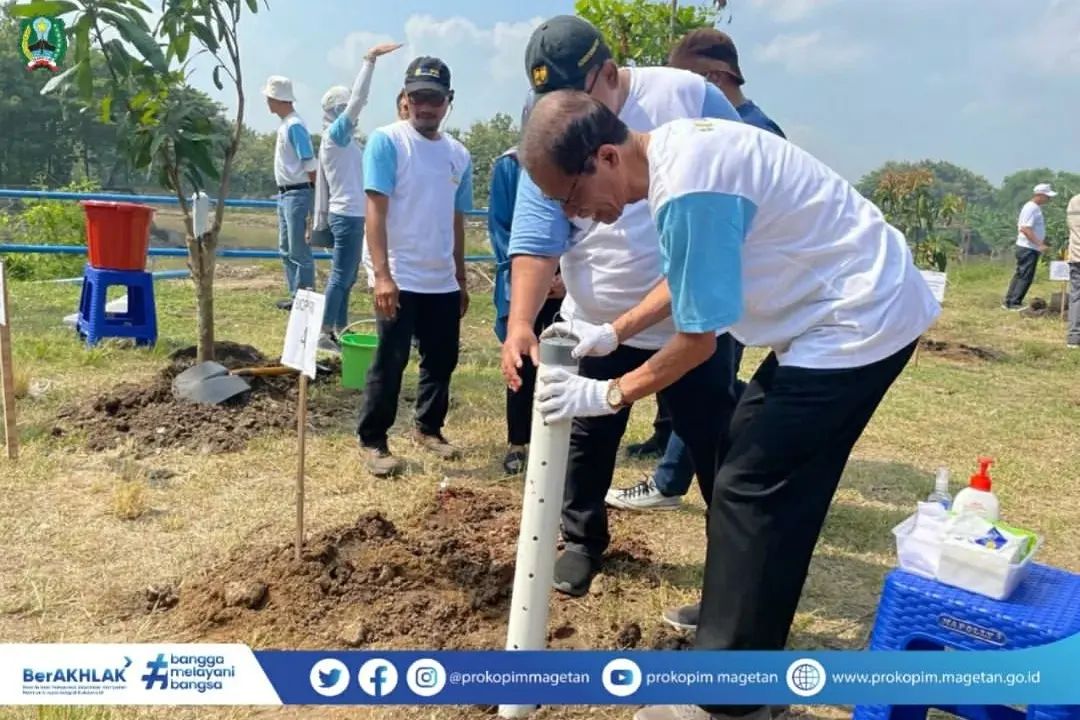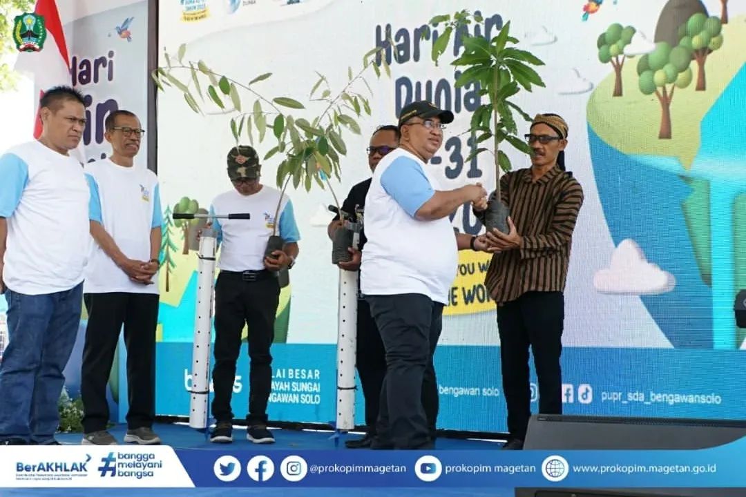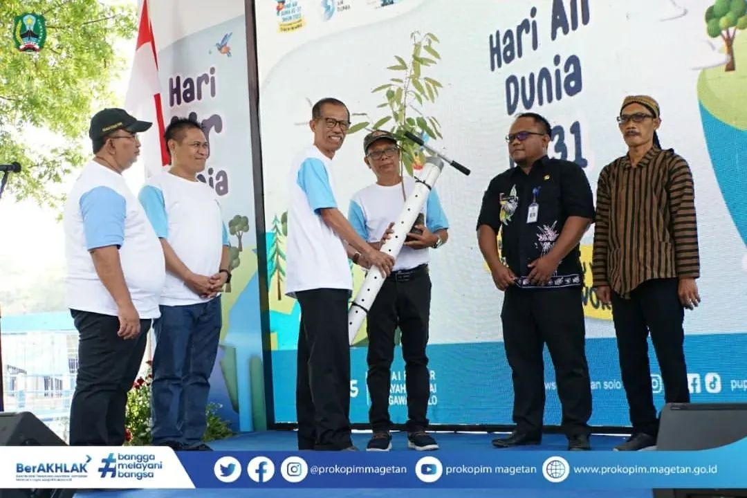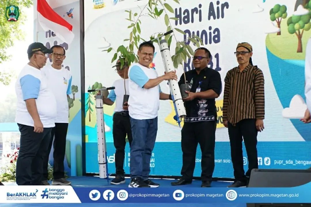 Peringatan Hari Air Dunia ke-31 Tahun 2023 mengambil tema “Be the Change You Want to See in the World” dengan sub tema “Gerakan Memasyarakatkan Biopori”, ditandai dengan kegiatan Penanaman Pohon dan PembuatanBiopori, bertempat di Bendung Jati DesaGoranggareng, Kec. Nguntoronadi, Magetan, Kamis (16/03/2023).