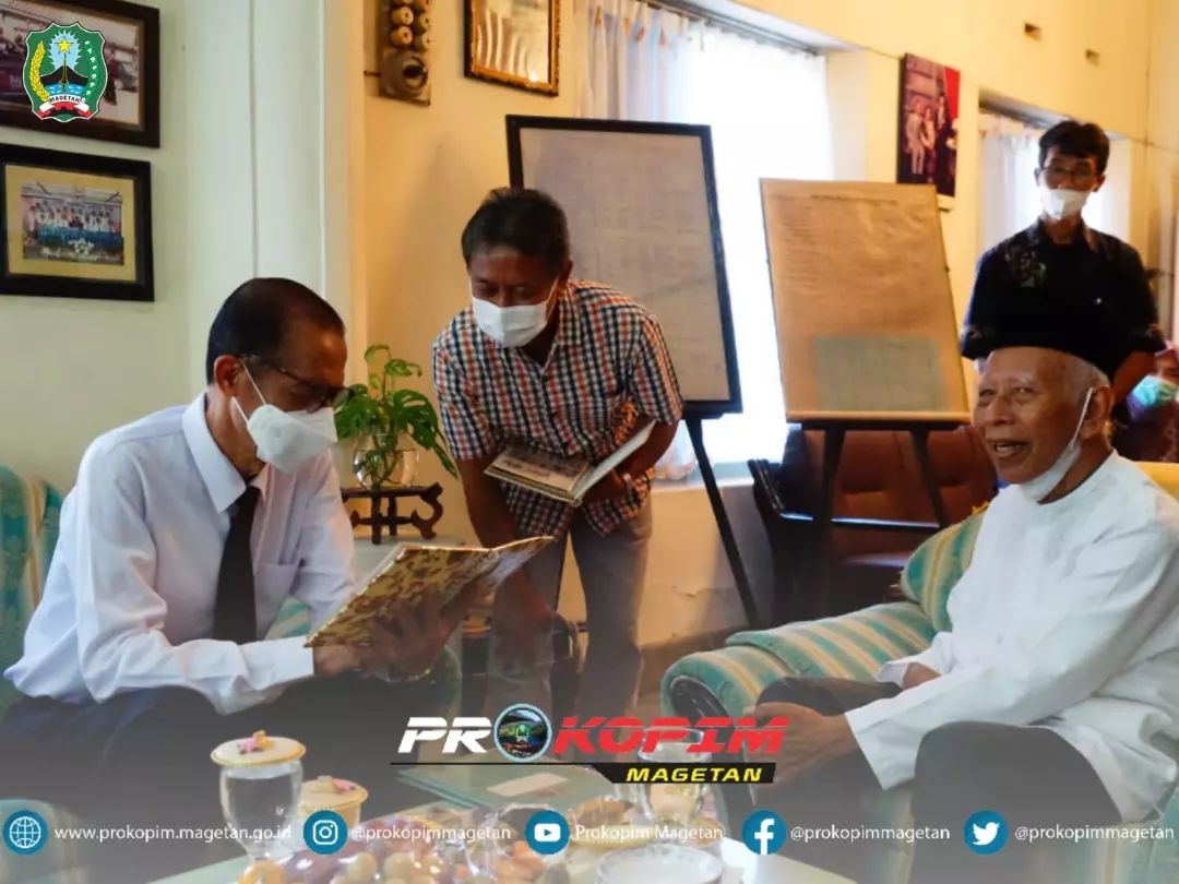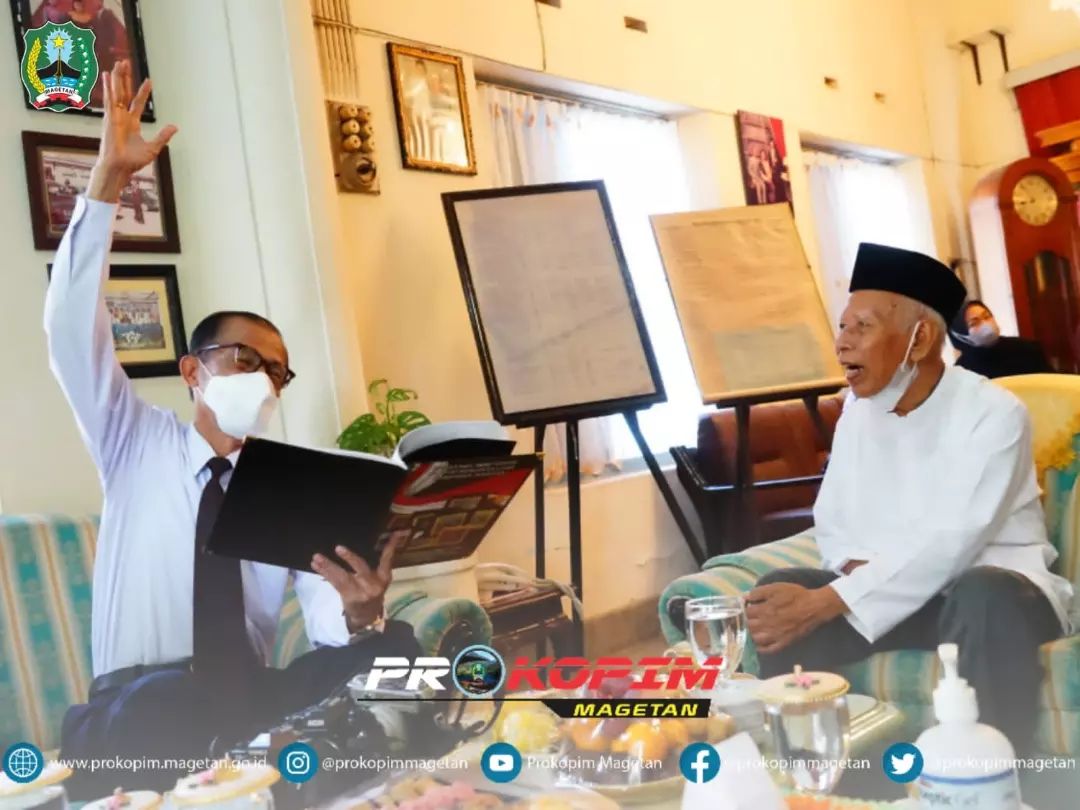 Sosok bapak Sarkoem dimata Bupati Suprawoto adalah saksi sejarah Magetan. Tidak hanya foto, dari obrolan santai tersebut bisa mendapatkan banyak cerita tentang Magetan di masa lalu. (Prokopim/dj/dok.be