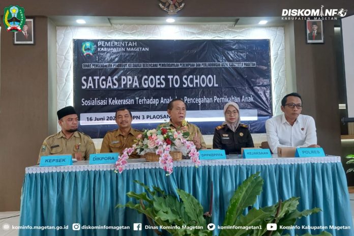 Satgas PPA ( Satuan Tugas Perlindungan Perempuan dan Anak ) adalah tim yang dibentuk untuk melindungi dan menangani masalah perempuan dan anak, terutama yang menjadi korban kekerasan atau eksploitasi. Satgas PPA berfungsi sebagai garda terdepan dalam upaya perlindungan dan pemenuhan hak-hak perempuan dan anak, baik di tingkat kabupaten maupun desa/kelurahan. Hari ini Satgas PPA lakukan sosialisasi di SMPN 3 Plaosan sebagai hasil kerja bareng Dinas PPKB PP dan PA Magetan. Senin (16/6/2025), diikuti Polres Magetan, Kejaksaan Magetan, Dikpora, Guru dan Siswa Siswi SMPN 3 Plaosan.