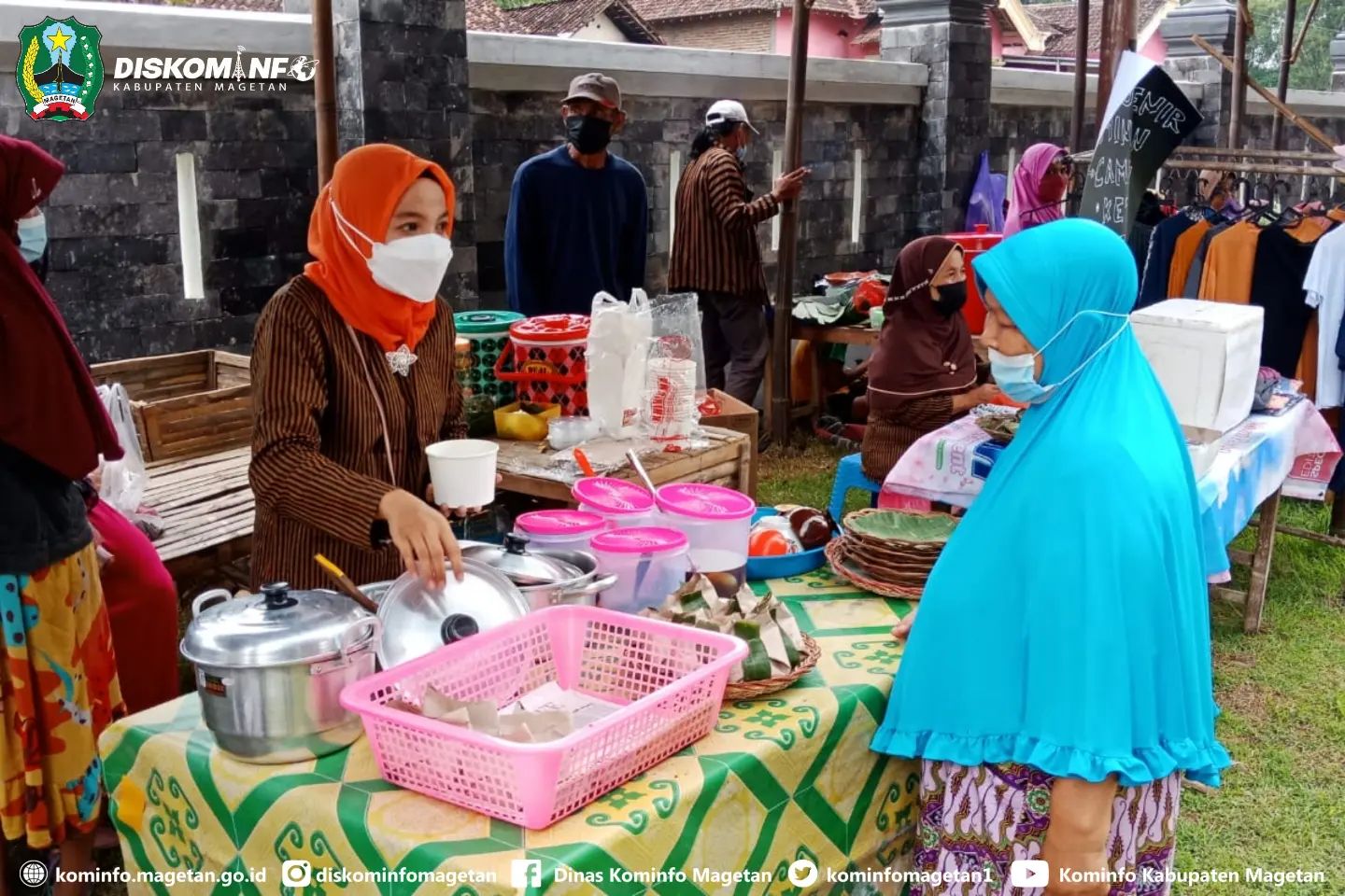 Di pasar tradisional ini, pedagang mengenakan baju lurik khas Magetan. Jajanan yang diperjualbelikan juga makanan dan minuman jadoel. Untuk membelinya, masyarakat menukarkan uang rupiah ke bank pasar tradisional. Kemudian, diganti dengan uang kreweng yang memiliki nominal khusus.