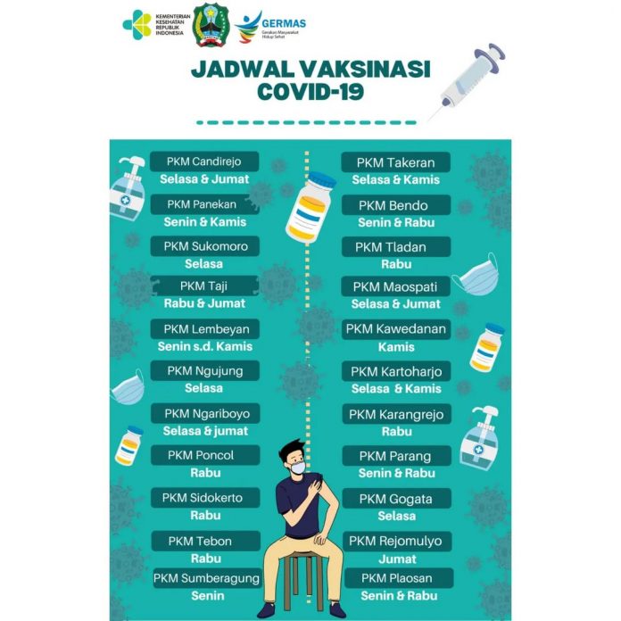 SobatKom, bagi anda yang belum melakukan Vaksin Covid-19, yuk, langsung cek jadwal vaksinasi di 22 PKM di Magetan, berikut!