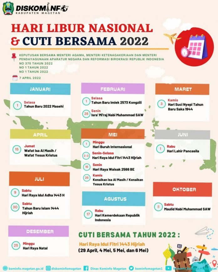SobatKom, masih ingat dengan keputusan pemerintah terkait cuti bersama Idul Fitri 2022? Bahagia ya, kalau tanggal merah di kalender bertambah 😁 Agar sobat ingat kapan harus pergi berlibur dan kapan harus bekerja, berikut kami sajikan info terkait hari libur nasional dan cuti bersama 2022.