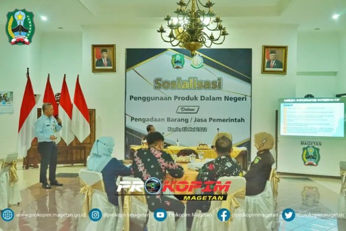 Kejaksaan Negeri Magetan melakukan sosialisasi aturan tentang penggunaan produksi dalam negeri dalam pengadaan barang dan jasa ( PBJ ) pemerintah, bertempat di Ruang jamuan Pendapa Surya Graha, Kamis (12/05/2022).