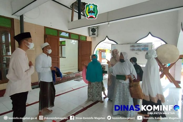 Magetan – Mario Suryo Aji pebalap muda Magetan, berpamitan kepada jemaah salat ashar Masjid Al-Aqsa KPR Selosari, Kamis (20/1/2022).