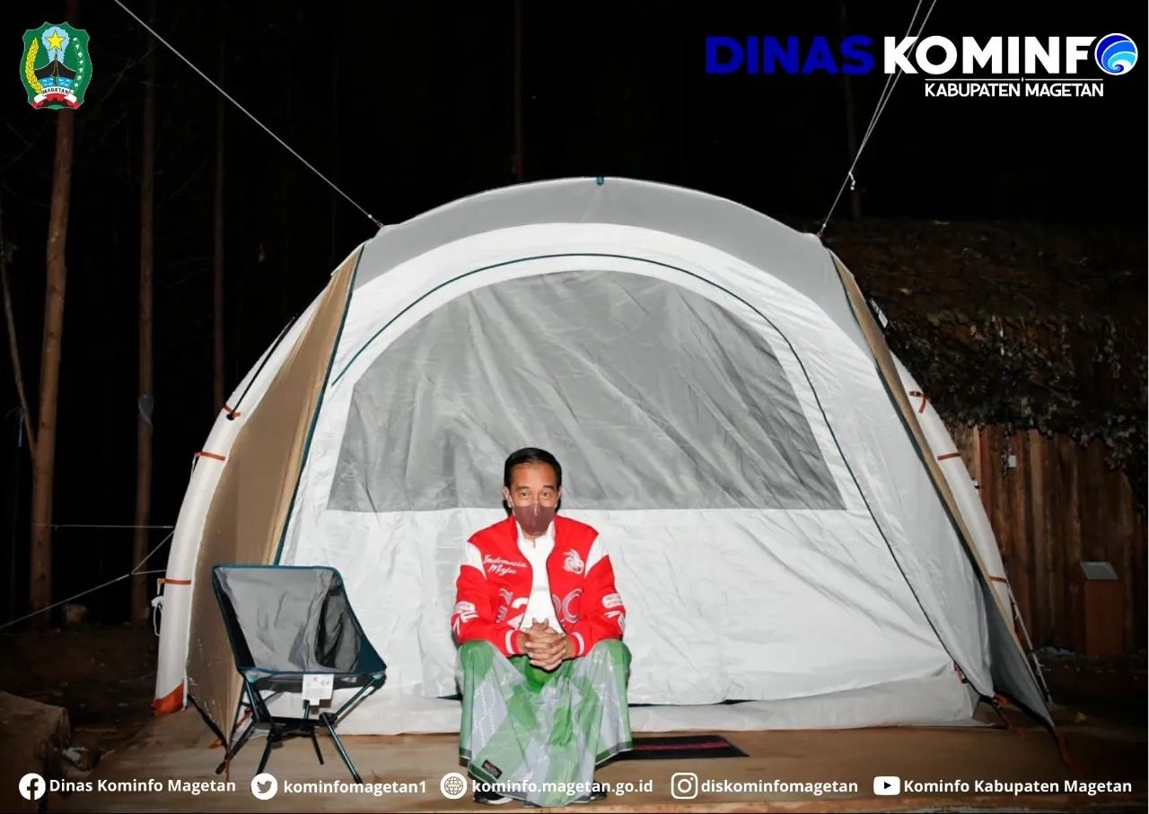 Setelah prosesi tersebut, Presiden Indonesia bersama beberapa Menteri Negara bermalam di IKN. Udara sejuk dan cuaca cerah terasa pada malam hari kemarin membuat Joko Widodo mengenakan pakaian sederhana dengan jaket merah bermotif G20 dan sarung bermotif kotak.(Diskominfo/pub.fik/dok.@setkabgoid/fa2/IKP1)