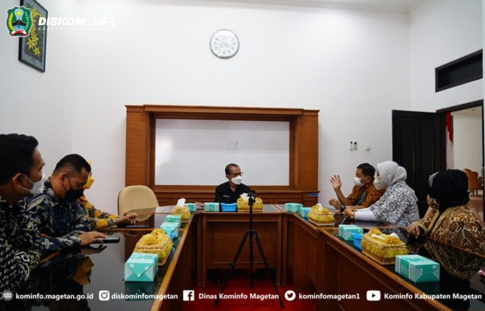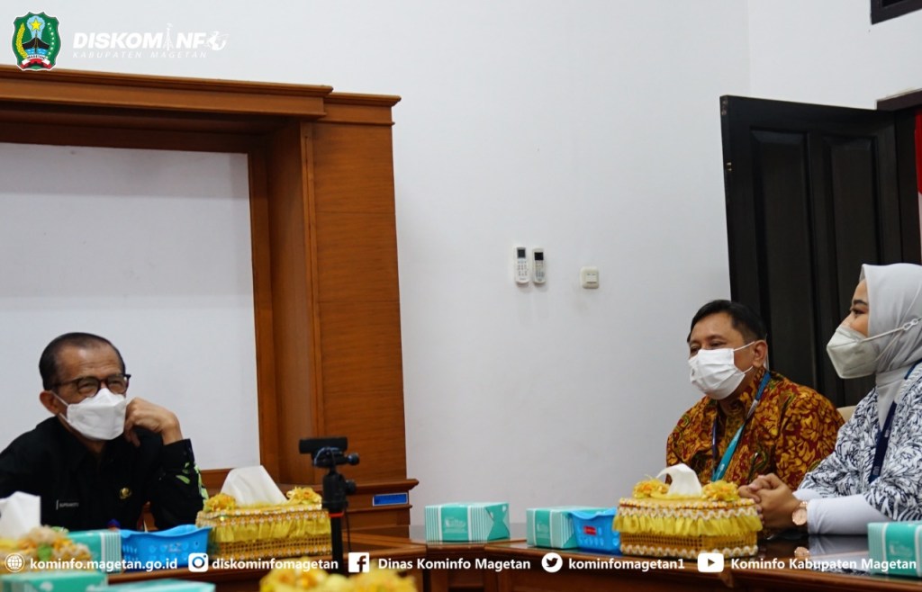 Pertemuan antara perwakilan pihak pegadaian area Madiun dan Bupati Magetan berlangsung di Ruang Rapat Pendapa Surya Graha, Kamis (19/05).(Diskominfo:nin/fa2/IKP1)