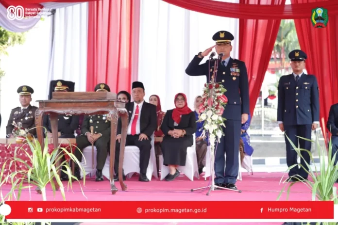 Suasana khidmat menyelimuti Alun-alun Magetan pada Minggu sore ini, saat Pemerintah Kabupaten Magetan menggelar Upacara Penurunan Bendera Merah Putih dalam rangka peringatan Hari Ulang Tahun ke-80 Kemerdekaan Republik Indonesia.