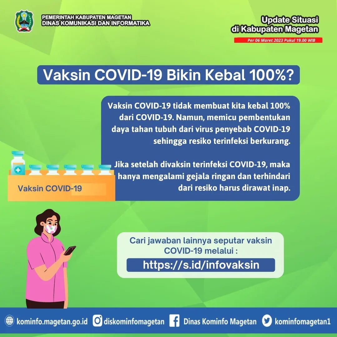 Pemerintah Kabupaten Magetan tidak henti mengingatkan masyarakat Magetan untuk tetap disiplin protokol kesehatan 5M, selalu menjaga imunitas dengan istirahat cukup, olahraga teratur, dan konsumsi makanan bergizi seimbang.